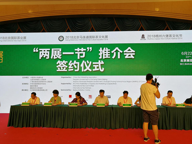 6月22日,由中國茶葉流通協(xié)會、北京市西城區(qū)人民政府和廣西壯族自治區(qū)梧州市人民政府聯(lián)合主辦,北京展覽館集團(tuán)有限公司承辦的“2018北京國際茶業(yè)展·2018北京馬連道國際茶文化展·2018梧州六堡茶文化節(jié)”在北京展覽館盛大開幕。強壽集團(tuán)董事長李浪輝先生應(yīng)邀參加此次展覽。